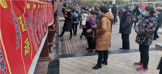 一大早,來自川匯區(qū)文聯(lián)、區(qū)民協(xié)的工作人員,將金色東方社區(qū)的休閑廣場裝扮得格外喜慶,兩條帶有傳統(tǒng)紋飾圖案的噴繪印著謎語和黨的知識,掛在休閑長廊上,吸引著出來曬太陽或散步的居民。區(qū)文聯(lián)黨組書記史濤,區(qū)文聯(lián)黨組成員、副主席游富華,區(qū)人和辦事處副書記武陽,市民協(xié)副主席羅營東、區(qū)民協(xié)主席杜超,區(qū)民協(xié)秘書長任建明等走進社區(qū),參加這場活動?!爸袊伯a(chǎn)黨是什么時候成立的?”“1921年7月23日”“答對了,獎洗衣液一壺!”游富華以問答的形式和居民們互動,向居民們普及黨的知識,居民們紛紛參與,氣氛活躍。