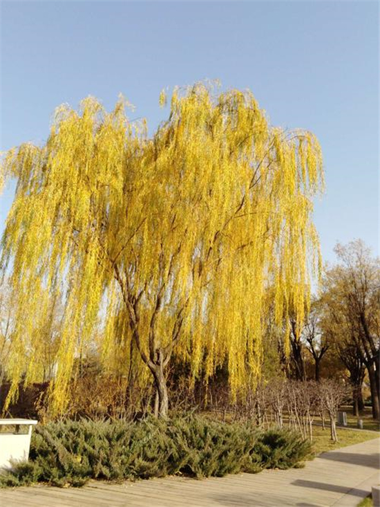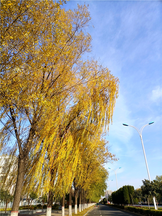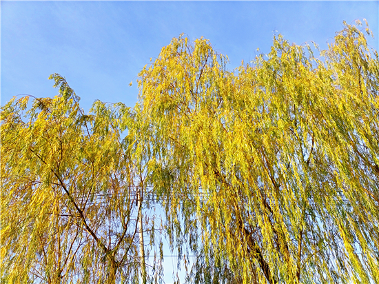 冬日暖陽(yáng)照三川,垂柳更換鵝黃衫。無盡情思春可寄,千條萬條隨風(fēng)翩。12月15日,我市天氣晴朗,路旁一排排垂柳隨風(fēng)搖曳,像一個(gè)個(gè)舞動(dòng)的小精靈,又像一團(tuán)團(tuán)鵝黃色的薄霧,如此美不勝收的風(fēng)景就像一幅畫,令人忍不住駐足欣賞。