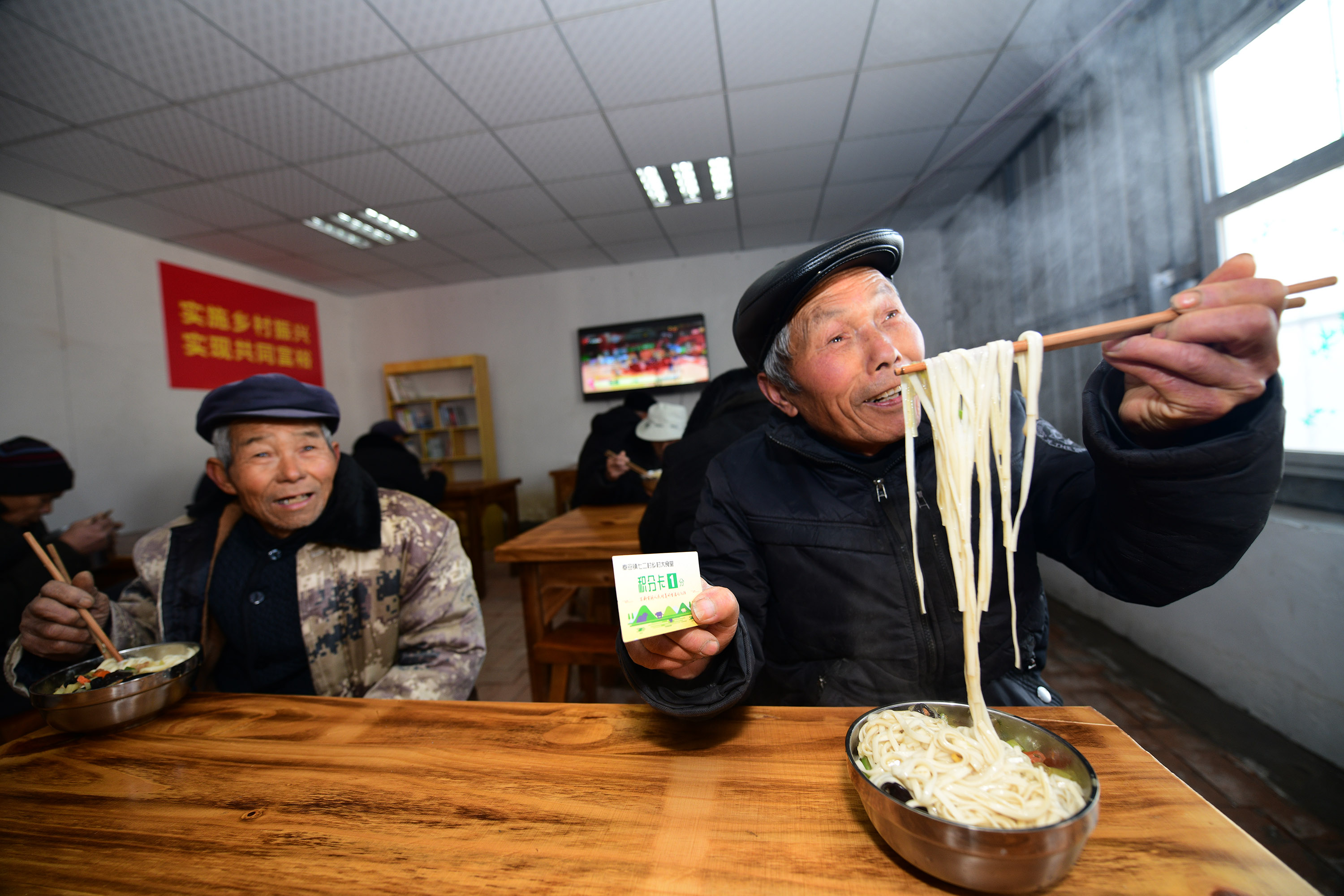 “開飯嘍!”隨著一聲喊,十幾位老人走進炊煙裊裊、菜飯飄香的小院,拿著碗和積分卡,排隊打飯。這是12月15日中午,記者在西華縣奉母鎮(zhèn)七里倉二村看到村食堂開飯的場景。老人每人一碗臊子面,吃得渾身熱乎乎的。這一勺飯,讓這里的老人長壽幸福,從此不再怕風雨不再畏嚴寒。這一勺飯,是七里倉二村今年實施土地治理后的村集體公糧,也是實施土地承包制40年來村集體里的首份余糧。