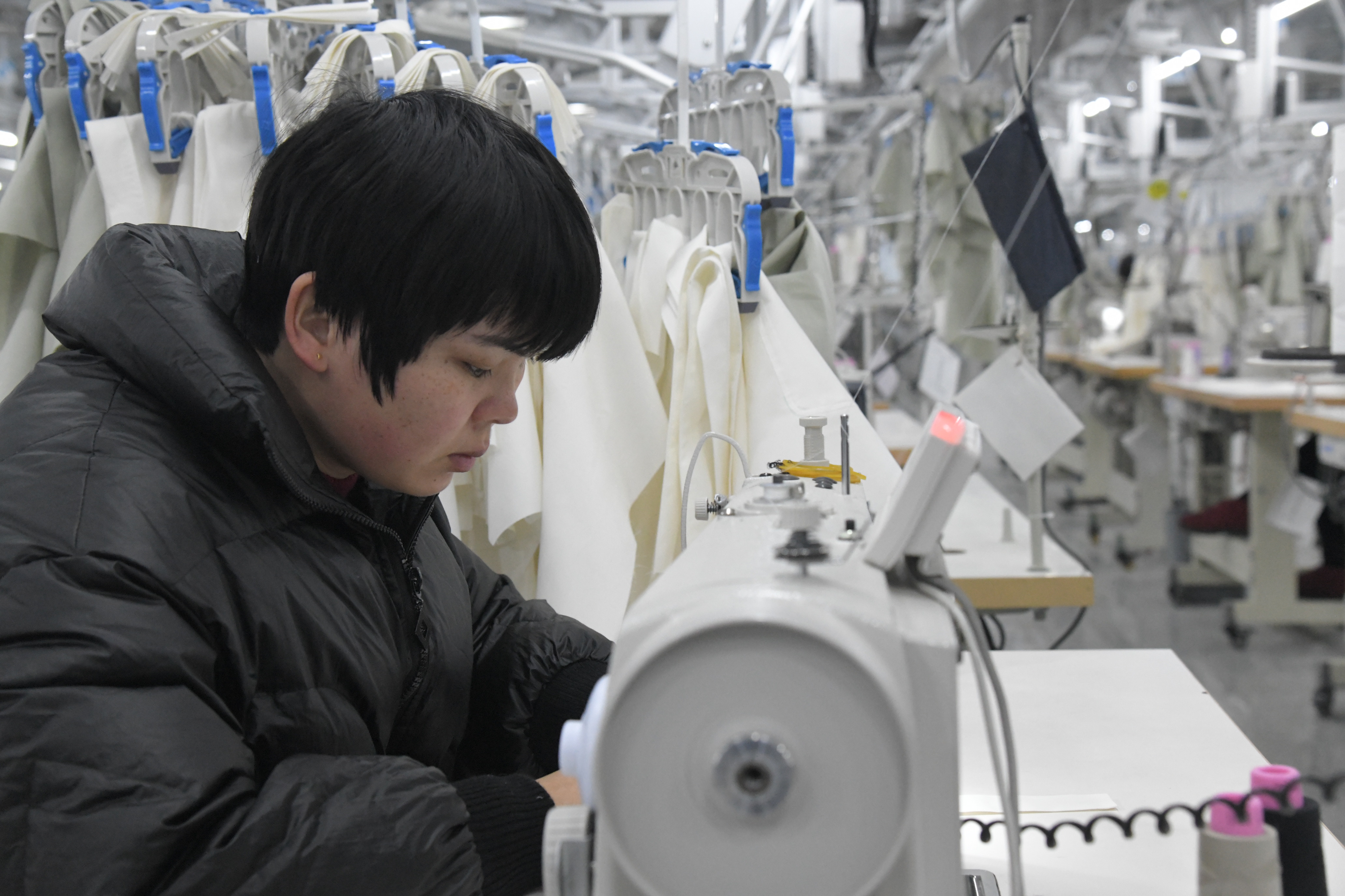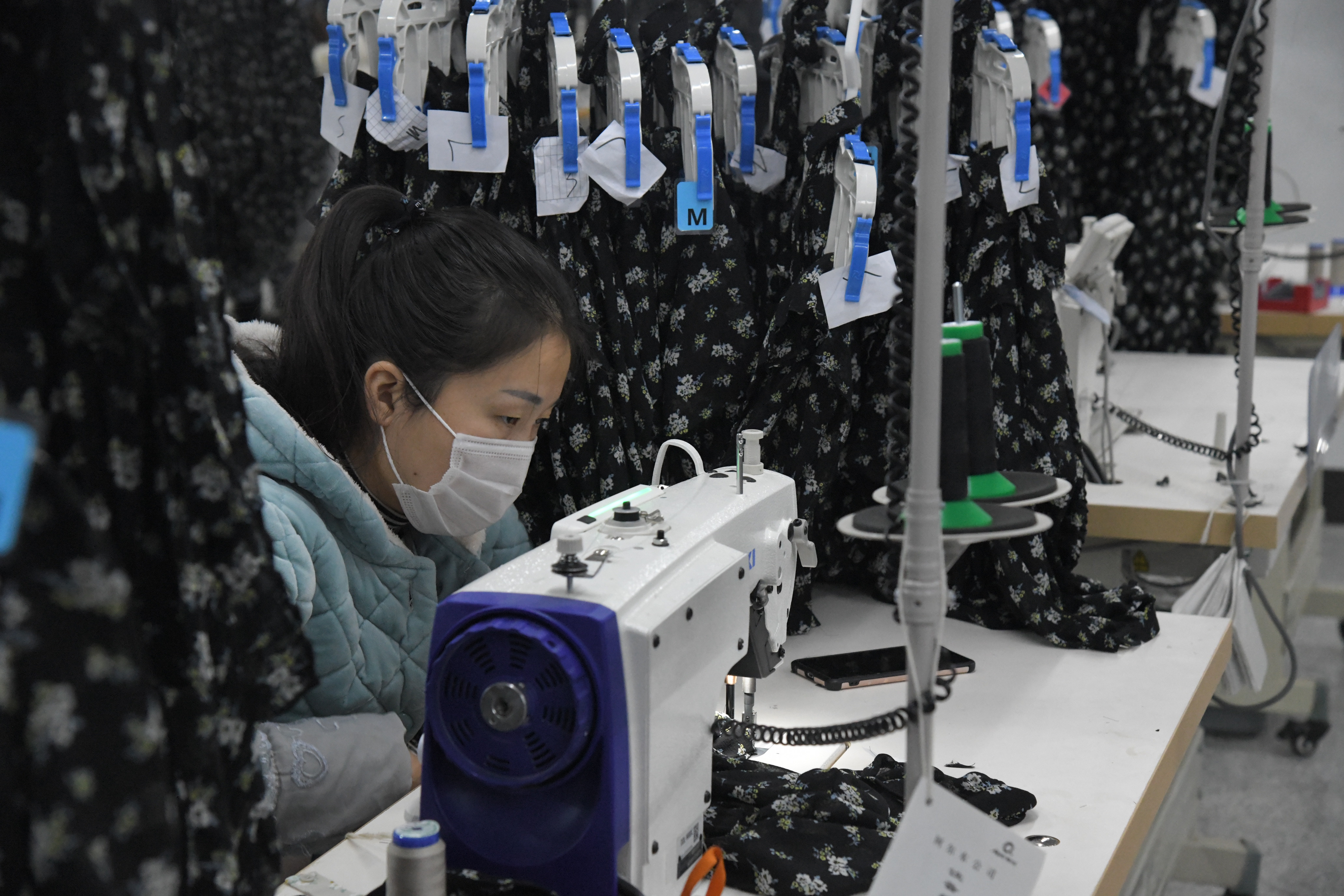 12月17日,在商水縣產(chǎn)業(yè)集聚區(qū)雅戈?duì)柺⑻┘徔椆I(yè)園一現(xiàn)代化車間內(nèi),紡織女工正在制作外貿(mào)訂單服裝。雅戈?duì)柺⑻┘徔椆I(yè)園是周口市重點(diǎn)招商引資企業(yè),總投資48億元,占地2000畝,是集棉紡、面料、印染、成衣、進(jìn)出口貿(mào)易、跨國(guó)經(jīng)營(yíng)于一體的大型綜合生產(chǎn)基地,長(zhǎng)期代加工雅戈?duì)?、PVH等國(guó)際品牌。該項(xiàng)目一期已經(jīng)投產(chǎn),全部建成后將填補(bǔ)我市紡織服裝行業(yè)缺少高端品牌的空白,促進(jìn)我市輕紡工業(yè)的發(fā)展。