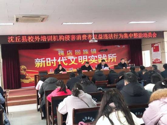 12月23日上午,沈丘縣校外培訓(xùn)機(jī)構(gòu)侵害消費(fèi)者權(quán)益違法行為集中整治動員會在槐店鎮(zhèn)召開。出席會議的有沈丘縣市場監(jiān)督管理局副局長李春華、教體局副局長李國峰、教體局安全辦主任劉志強(qiáng)等,各鄉(xiāng)鎮(zhèn)培訓(xùn)機(jī)構(gòu)負(fù)責(zé)人參加會議,會議由槐店鎮(zhèn)鎮(zhèn)長李傳勝主持。
