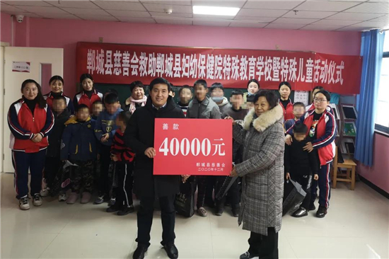 12月29日,鄲城縣慈善會會長趙愛梅、常務(wù)副會長趙如軒、副會長朱山峰、秘書長代文一行4人,到鄲城縣婦幼保健院特殊教育學(xué)校對特殊兒童進(jìn)行慈善捐助。
