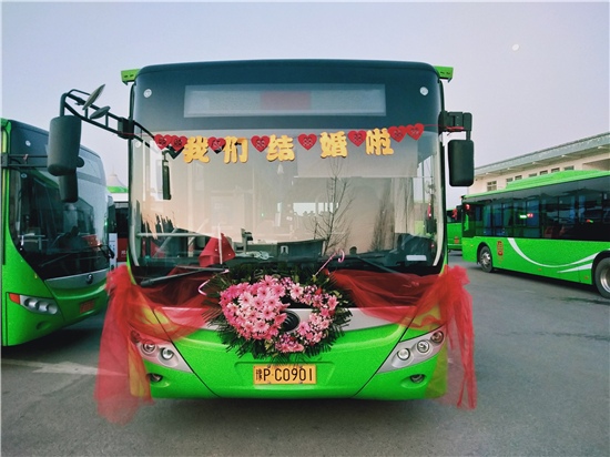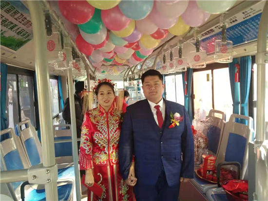 “這個(gè)想法是我和我媳婦一起商量出來的。我們覺得別人結(jié)婚都是用婚車,有點(diǎn)千篇一律。我們作為公交人就想另辟蹊徑,用我們公司的公交車當(dāng)婚車,同時(shí)也倡導(dǎo)綠色出行,還很有紀(jì)念意義?!?新郎買亞飛告訴記者。