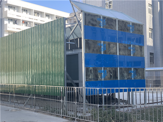 2020年12月30日上午,記者在位于嵩山路的周師西門處,隱約聽到“轟轟”聲,在周師西門向北約300米處,透過白色柵欄,記者看到一組被綠色鐵皮圍起來的空調(diào)外機(jī),外機(jī)總長約20米,寬約5米,機(jī)組運(yùn)行發(fā)出“轟轟”的響聲。