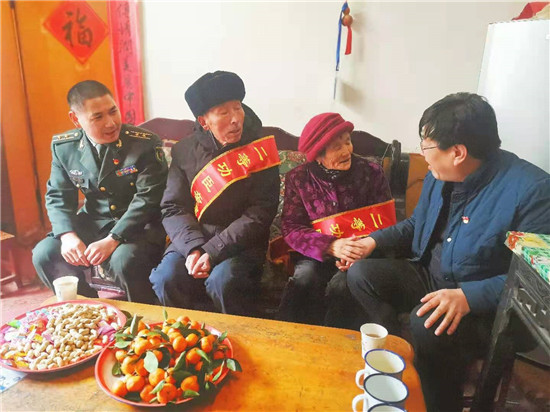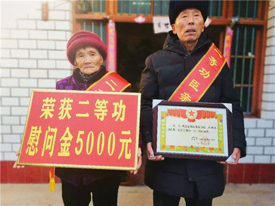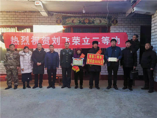 近日,周口市淮陽區(qū)人武部與區(qū)退役軍人事務(wù)局相關(guān)領(lǐng)導(dǎo),來到該區(qū)四通鎮(zhèn)孔北行政村劉莊村,為在部隊(duì)榮立二等功的現(xiàn)役軍人劉飛的父母送去立功喜報(bào),并送上慰問品及慰問金。臨走,劉飛的父親劉啟來說:“請(qǐng)領(lǐng)導(dǎo)放心,俺會(huì)讓孩子在部隊(duì)更加安心服役,力爭取得更大成績,多為家鄉(xiāng)增光添彩。”(張然 張雙斌 攝影報(bào)道)