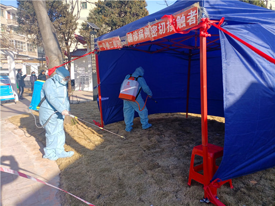 演練開始后,公安部門按照新冠肺炎疫情公共衛(wèi)生應急處置預案要求,立即下達指令,派出所民警到達現(xiàn)場維護秩序,區(qū)域控制,拉警戒線,嚴格管控人員,禁止一切車輛和人員通行。街道辦事處迅速組織社區(qū)干部及社區(qū)網格員開展核酸檢測和宣傳動員工作,根據(jù)應急預案分工開展群眾宣傳動員工作,并對患者居住單元電梯樓道等公共區(qū)域進行消毒。工作人員到確診患者家對2名密切接觸者進行流調和健康教育,將密切接觸者用120負壓救護車單人單車轉運至集中醫(yī)學隔離觀察點,對確診病例家庭環(huán)境進行采樣和消殺。