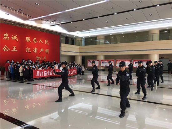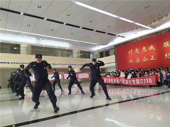 1月10日是首個“中國人民警察節(jié)”和“110”誕生35周年。小記者應(yīng)邀提前走進市公安局參觀體驗。9日上午,在二樓大廳,特警隊員進行了擒敵拳表演,現(xiàn)場掌聲經(jīng)久不息。
