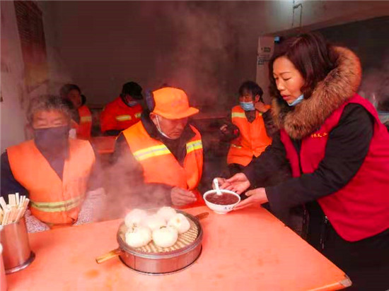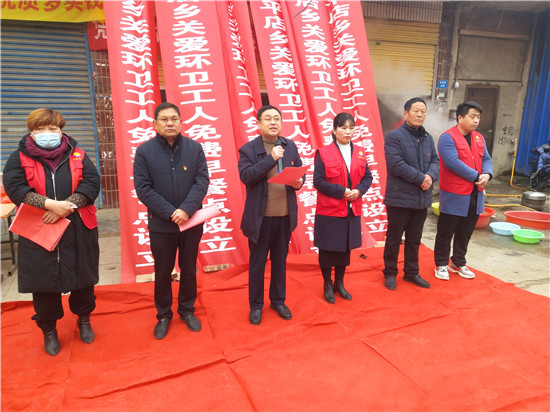 “你們是城市的美容師,每天迎來清晨的第一縷陽光,送走傍晚的最后一片晚霞,為了平店鄉(xiāng)的市場街道衛(wèi)生清潔作出了貢獻(xiàn)。從今天起商水義工協(xié)會將為你們免費(fèi)提供愛心早餐,這不僅僅是為了給你們送去關(guān)心與體貼,更重要的是讓廣大群眾了解到你們的辛勞、珍惜你們的勞動成果……”劉玉英首先講了活動的初衷和目的。