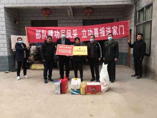 一人受獎(jiǎng),全家光榮;一人立功,全社會(huì)褒獎(jiǎng)。1月21日,鄲城縣人武部和縣退役軍人事務(wù)局為全縣榮立二等功、三等功的軍人家庭送去立功喜報(bào)、慰問(wèn)金和慰問(wèn)品,向廣大軍人、軍屬送去黨和政府的溫暖和慰問(wèn),讓軍人軍屬共享立功受獎(jiǎng)的榮耀和喜悅。