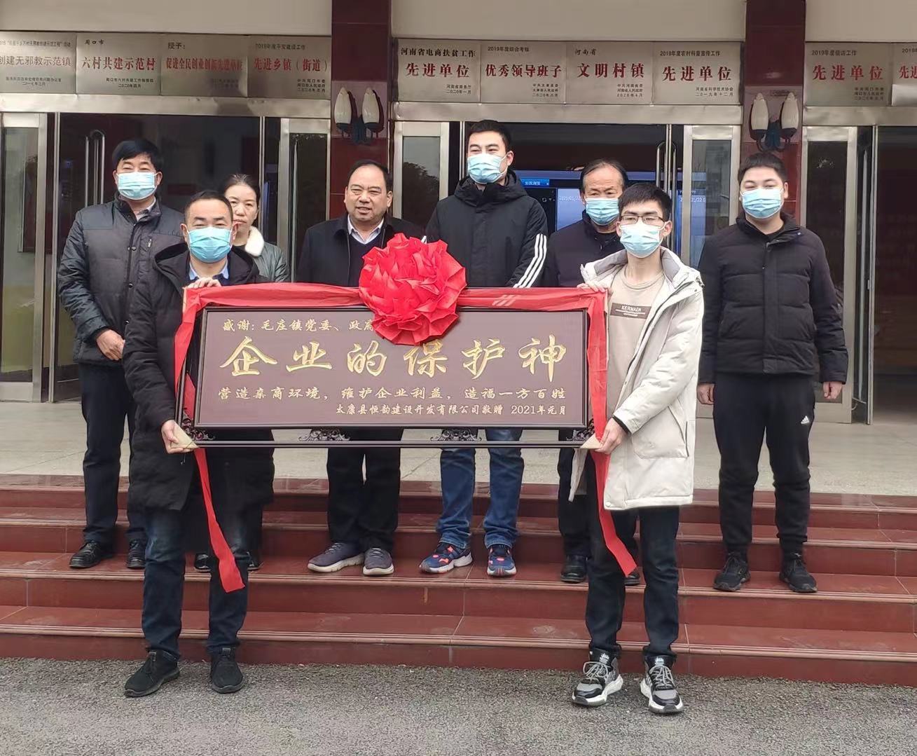 1月22日上午,太康縣毛莊鎮(zhèn)政府大門前人頭攢動,人聲鼎沸。在眾人的嘖嘖稱贊中一塊鐫刻著“企業(yè)的保護(hù)神”的牌匾被遞交到該鎮(zhèn)工作人員手中。
