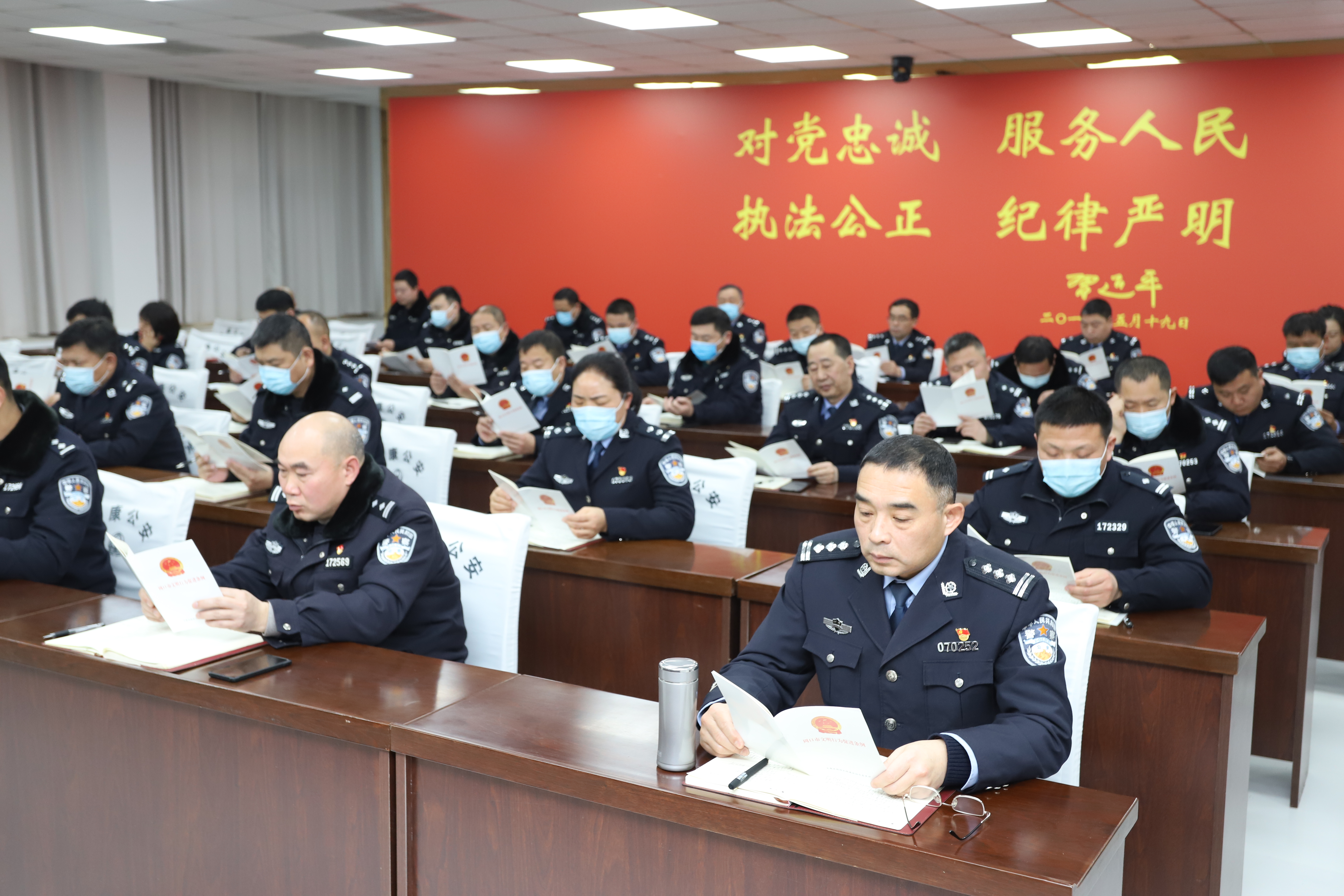 太康縣公安局重視精神文明建設(shè)工作,日前局黨委號(hào)召全體民警說文明話,做文明事,爭做文明警察,創(chuàng)建文明警營活動(dòng)。圖為該局組織民警學(xué)習(xí)《周口市文明行為促進(jìn)條例》。③5