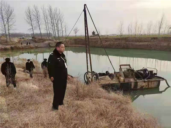縣水利局水政監(jiān)察大隊(duì)大隊(duì)長張?bào)w營對(duì)工作高度負(fù)責(zé),勇于擔(dān)當(dāng),為確保河道安全暢通,每天值班帶隊(duì)巡察,常忙至深夜。巡查中,他不放過任何一處可疑點(diǎn),在大郭莊河道打擊非法采砂行為時(shí),對(duì)現(xiàn)場(chǎng)可疑人員一一進(jìn)行排查,并對(duì)非法采砂船只進(jìn)行現(xiàn)場(chǎng)切割。