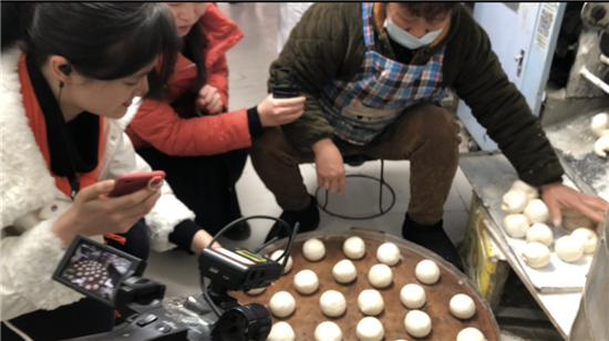 過大年,蒸饅頭。當(dāng)日9時(shí)許,在項(xiàng)城市,兩位主播唱起中國(guó)傳統(tǒng)年俗童謠,隨后走進(jìn)一家饅頭店現(xiàn)場(chǎng)直播年饃制作過程。饅頭店老板姓黃,從事饅頭制作30余年,直播開始即見轟鳴的和面機(jī)攪動(dòng)著巨大的白面團(tuán),黃老板介紹說,這次和的面有130余斤,”以前是人工揉面,一個(gè)壯勞力一次揉40來斤面就不錯(cuò)了。現(xiàn)在機(jī)器揉面除了揉的多,而且快,還越揉越白,不像人工揉面越揉越黑。機(jī)器揉面越揉越勁道,做出來的饃好吃,我們這兒現(xiàn)在全機(jī)械化制作“。