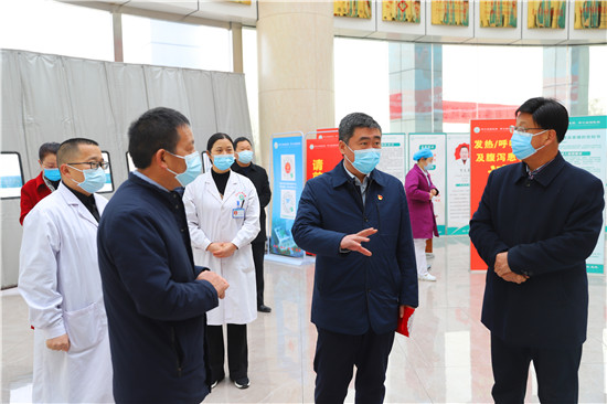 聽(tīng)取匯報(bào)后,孫鵬前往發(fā)熱門診實(shí)地查看了解疫情防控工作的各項(xiàng)措施,就當(dāng)前疫情防控重點(diǎn)與一線人員進(jìn)行深入交流。新冠疫情暴發(fā)以來(lái),港區(qū)醫(yī)院主動(dòng)承擔(dān)公共衛(wèi)生職責(zé),協(xié)助港區(qū)黨委、管委會(huì)為港區(qū)群眾筑起了一道堅(jiān)固的健康安全防線。武漢疫情暴發(fā)期間,周口港區(qū)醫(yī)院派出一支由8人組成的援鄂醫(yī)療隊(duì)前往武漢,在武漢商職醫(yī)院收治新冠肺炎患者117人。孫鵬對(duì)港區(qū)醫(yī)院在新冠疫情防控工作中展現(xiàn)出的擔(dān)當(dāng)、作為進(jìn)行表?yè)P(yáng),對(duì)8位援鄂醫(yī)療隊(duì)員冒著生命危險(xiǎn),無(wú)私奉獻(xiàn)、勇于擔(dān)當(dāng)?shù)木礃I(yè)精神表示贊賞。