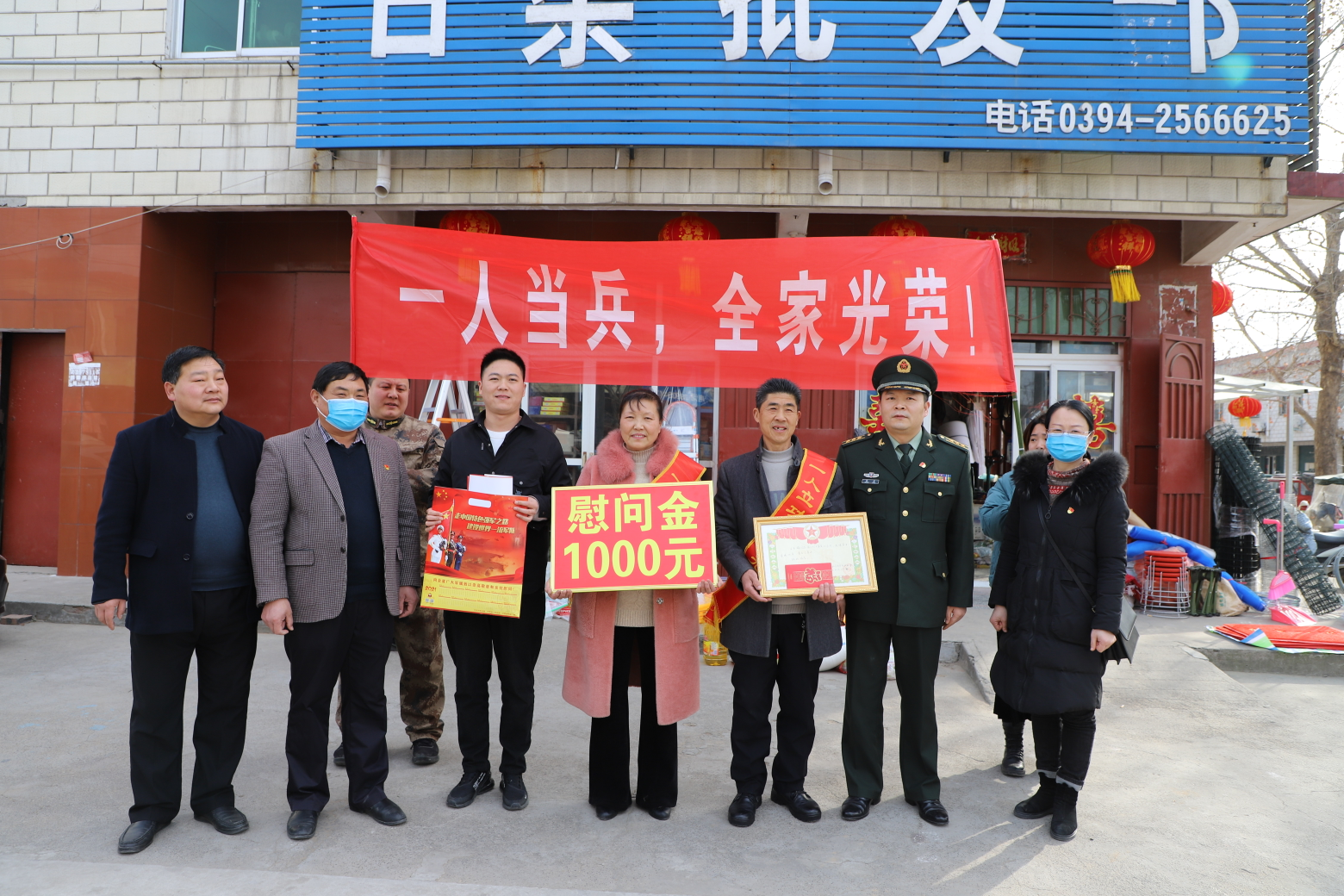 “一人當(dāng)兵,全家光榮”。為貫徹落實(shí)習(xí)近平總書(shū)記“讓軍人成為全社會(huì)尊崇的職業(yè)”指示精神,同時(shí)也為了在全區(qū)范圍內(nèi)營(yíng)造崇軍、擁軍、愛(ài)軍的社會(huì)氛圍,激勵(lì)廣大適齡青年參軍報(bào)國(guó),為國(guó)防建設(shè)作貢獻(xiàn)的熱情。在春節(jié)來(lái)臨之際,黃泛區(qū)人民武裝部政委張勇協(xié)調(diào)經(jīng)開(kāi)區(qū)黃泛區(qū)社會(huì)事務(wù)服務(wù)中心黨工委、退役軍人事務(wù)局等地方工作人員集中開(kāi)展“送一份喜報(bào),做一次動(dòng)員”活動(dòng)。