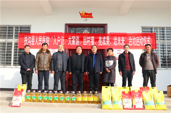 2月8日上午,扶溝縣人民醫(yī)院黨委書記、院長何躍東,副院長徐冰、王月鳳、齊建平,帶著米、食用油等慰問品到曹里鄉(xiāng)刁灣村開展“話脫貧、感黨恩、奮進(jìn)新時代”主題活動,送去新春的祝福。
