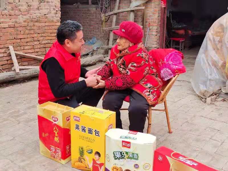 按照中國(guó)民間傳統(tǒng)習(xí)俗,新春伊始,人們都要穿戴新衣新帽走親訪友,拜年送祝福。2月12日,農(nóng)歷正月初一一大早,遜母口鎮(zhèn)心連心雷鋒服務(wù)隊(duì)隊(duì)長(zhǎng)張新靜帶領(lǐng)志愿者張建設(shè)、劉賀敬、馮茹愿、賈衛(wèi)蒙、馮柯馨、歐樣等人就敲開了106歲的張占花家門。當(dāng)日,他們帶著核桃牛奶、面包、八寶粥,專門來(lái)為老人來(lái)拜年。 “新靜他們來(lái)了……”一聽聲音,張占花老人就猜到了是誰(shuí)。經(jīng)過去年一年的幫扶,張新靜等人已經(jīng)與照顧占花老人成了“熟人”?!斑@些孩子們可沒少幫俺,又送物又幫俺打掃庭院”??吹街驹刚邆兊牡絹?lái),張占花老人的臉上掛滿笑容。