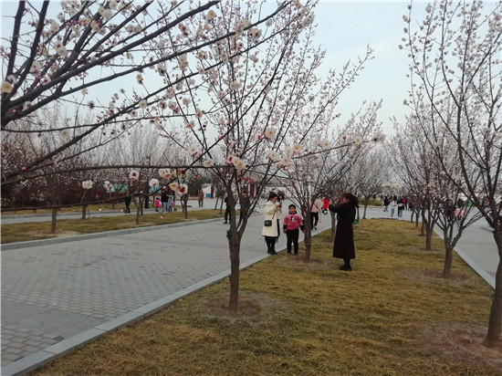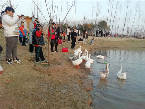 春節(jié)期間,陽(yáng)光燦爛,眾多市民呼朋引伴選擇近郊游。新落成的淮陽(yáng)梅園每天迎來成群結(jié)隊(duì)的市民。這里臘梅等花樹次第開放,湖水澄清,大白鵝引頸高歌,還有精致的木質(zhì)棧橋等,一步一景,成為人們休閑游玩的好去處。記者 侯俊豫 攝