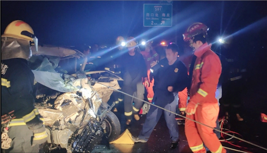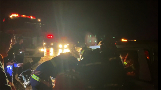 2月21日19時許,大廣高速周口段2064KM附近發(fā)生一起交通事故,大貨車沖破護(hù)欄與對向車道內(nèi)的兩輛私家車發(fā)生碰撞,司機(jī)和一名5歲女童被困車中。接到報警后,民警、消防、醫(yī)護(hù)人員迅速趕到現(xiàn)場開展救援,20時39分兩人被救出并接受進(jìn)一步治療。