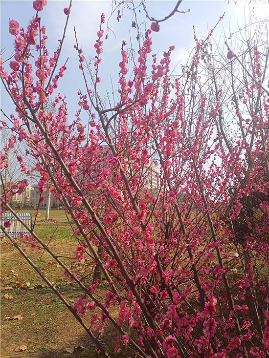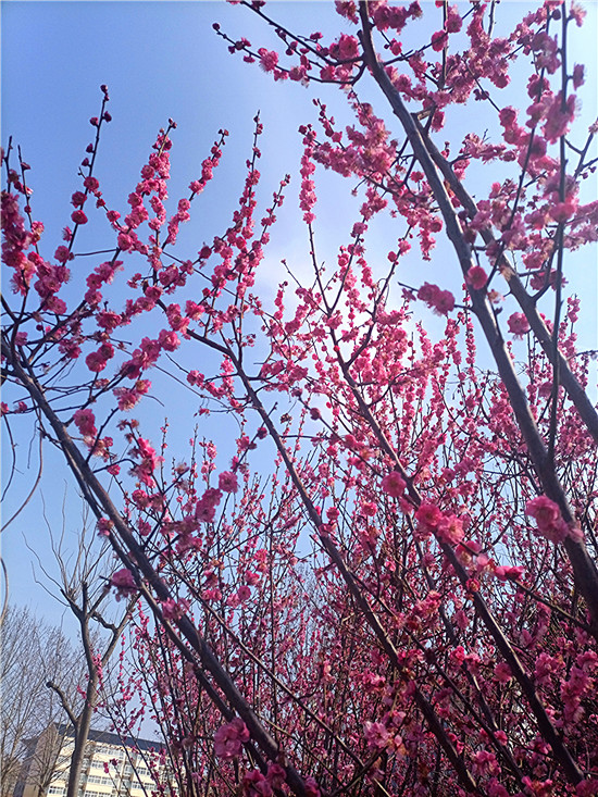 梅花,自古以來就是文人墨客筆下的???。有詩云:“春風試手先梅蕊,頩姿冷艷明沙水?!泵坊軌蛄韬㈤_,兼具冷艷和嬌媚,被譽為花中四君子之首。近日,我市天氣晴好,公園內(nèi)、道路旁,一樹樹梅花開的熱熱鬧鬧、密密匝匝,令人感受到濃濃的春意和無盡的美好。