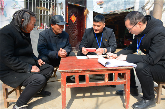 “春節(jié)前夕,有人給您送慰問品嗎?”“有啊,村干部送過了一桶食用油?!薄澳鷤兎蚱迋z個養(yǎng)老金沒問題吧?”“正常領(lǐng)取,沒有問題?!薄坝心膫€部門向您收過錢嗎?”“這不屬于非法占地,沒有人來要錢?!薄澳昵澳鷧⒓恿舜逦瘬Q屆選舉嗎?對干部滿意不?”“參加了,俺對新任干部沒有意見”......不知不覺臨近中午,邵國闖等微笑告辭。