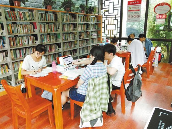 市民在街頭的智慧圖書館看書。 (資料圖片)