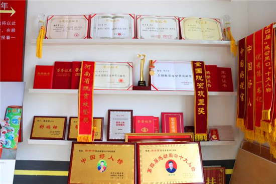 “這是村里自發(fā)給韓書(shū)記送的第一面錦旗?!痹谇昂涡姓宕逦瘯?huì)榮譽(yù)室的北墻上掛著30多面錦旗,其中一面錦旗上寫(xiě)著“人民好公仆、黨的好干部”,說(shuō)起這面錦旗的故事,村干部何金龍顯得很激動(dòng)。
