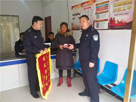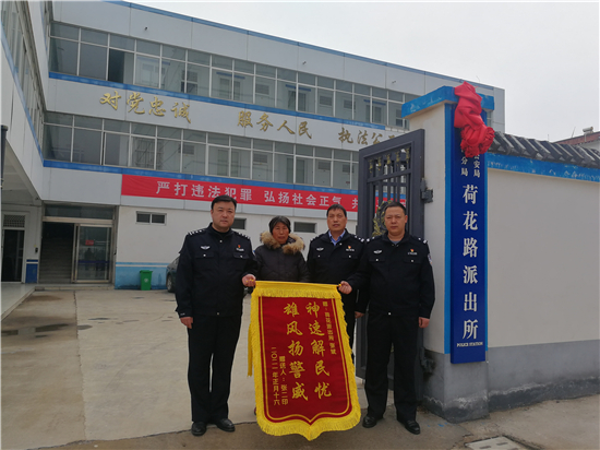 2月27日上午,一名群眾將寫著“神速解民憂 雄風(fēng)揚(yáng)警威”錦旗送到川匯公安分局荷花路派出所民警手中,感謝民警們的辛苦付出。錦旗背后的故事還得從一條抖音說(shuō)起。