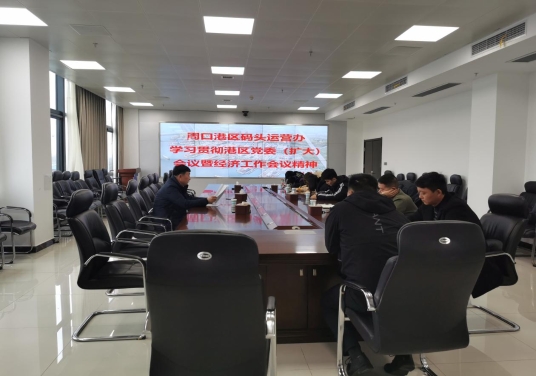 3月1日上午,周口中心港碼頭運(yùn)營辦召開學(xué)習(xí)會,深入學(xué)習(xí)港區(qū)黨委(擴(kuò)大)會議暨經(jīng)濟(jì)會議工作精神。運(yùn)營辦主任段傳奇主持學(xué)習(xí)會并對如何貫徹落實(shí)好港區(qū)黨委(擴(kuò)大)會議暨經(jīng)濟(jì)會議工作精神提出工作要求,運(yùn)營辦全體成員參加學(xué)習(xí)。