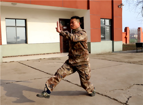 “立正!向右看齊!”3月4日,在鄲城縣民兵訓練基地,2021年春季征兵預定新兵訓練場上,53歲的訓練班長王成華從骨子里喊出這句口號、集結(jié)準新兵隊伍。從1992年“鐵軍”127師退伍進入人武部至今,這句口號他已經(jīng)喊了29年,始終底氣十足。同事和準新兵們尊稱他為“班長王”。