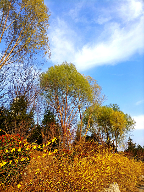 3月4日,我市天氣晴朗,風(fēng)和日麗的好天氣令人心曠神怡,不少市民走出家門,來到公園、河堤等處,享受藍天碧水、和煦春風(fēng)和柳綠花香帶來的愉悅心情。