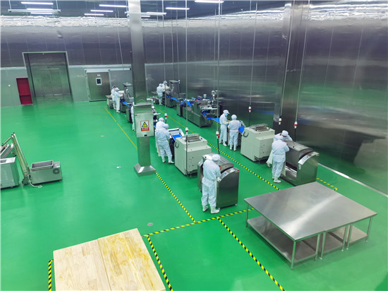 據(jù)了解,周口乾盛中央廚房是川匯區(qū)2020年重點招商引資項目。公司以綠色、健康、營養(yǎng)、安全的餐飲服務為宗旨,采用國內先進的食品自動生產(chǎn)流水線,采取“統(tǒng)一配方、統(tǒng)一加工、統(tǒng)一配送”的方式,為全市大中專院校、中小學校、企事業(yè)單位等提供專業(yè)團膳服務。記者在現(xiàn)場看到,該企業(yè)的生產(chǎn)操作間細分為面食、烹飪、米飯、凈菜等獨立區(qū)域。操作間里的工作人員穿戴一次性消毒服裝、口罩、頭罩、鞋套,各司其職、有條不紊地操作設備。全廠安裝有300多個攝像頭,實現(xiàn)360度無死角監(jiān)控,可以隨時查看生產(chǎn)和配餐情況。在蔬菜清洗處理方面,該企業(yè)先對蔬菜進行拆箱、分揀并開始一次清洗,然后進行二次清洗、切割和脫水,使用凈化水對蔬菜進行旋流沖洗,并通過探針探測水的潔凈度,根據(jù)水質量隨時更換。生產(chǎn)操作間內的先進工藝和設備也格外吸人眼球,旋轉式燃氣炒鍋在這里被稱為炒菜機器人,讓炒菜實現(xiàn)了智能化、標準化,工作人員只需將切配脫水后的材料按照標準調配好入鍋,設置自動運轉程序就可以,不用人工攪拌。