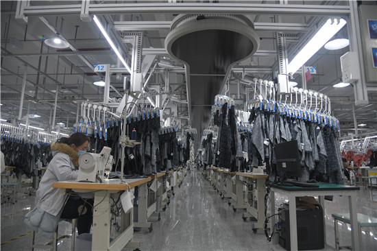 3月8日上午,位于商水縣產業(yè)集聚區(qū)內的河南阿爾本制衣有限公司數(shù)千名女工在縫制訂單衣服。