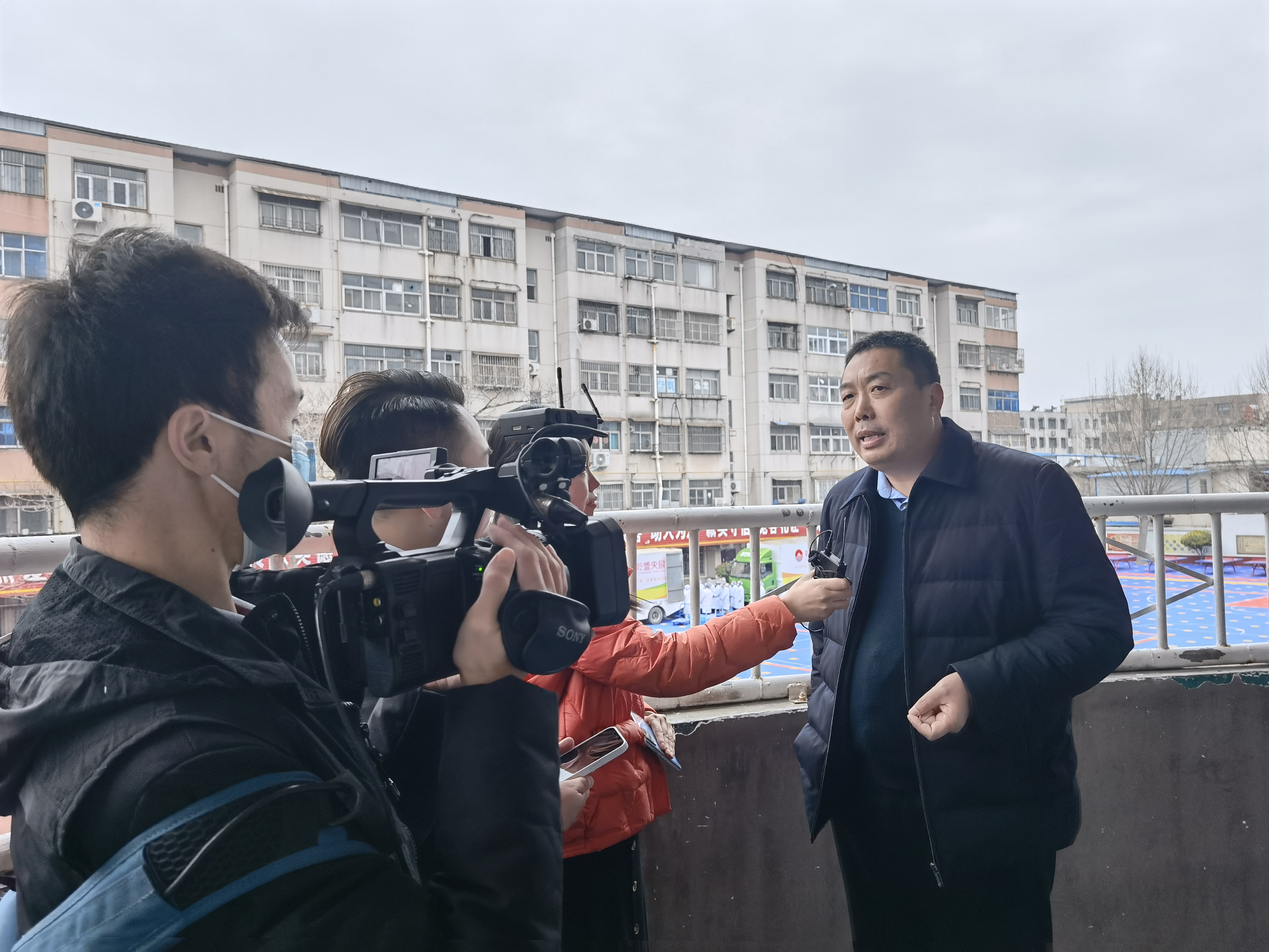 (七一路二小校長邵在斌接受周口報業(yè)融媒體直播團(tuán)隊采訪)
