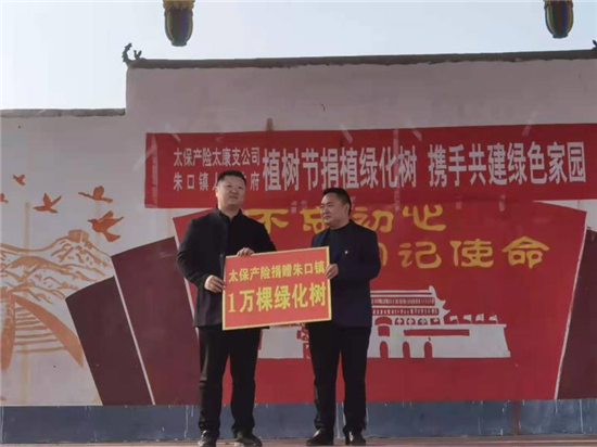 “這楸樹作為行道綠化,真不賴,現(xiàn)在栽上澆點(diǎn)水就能活……”在太康縣朱口鎮(zhèn)周寨村參加捐贈(zèng)儀式的洼陳村村民代表張紅飛說。3月12日,植樹節(jié)當(dāng)日,太康縣朱口鎮(zhèn)與太平洋保險(xiǎn)財(cái)產(chǎn)保險(xiǎn)公司周口支公司在周寨村舉行了“植樹節(jié)捐植綠化樹,攜手共建綠色家園活動(dòng)”,太平洋保險(xiǎn)財(cái)產(chǎn)保險(xiǎn)公司為朱口鎮(zhèn)捐贈(zèng)綠化樹10000棵,助力朱口鎮(zhèn)建設(shè)綠色家園。太平洋保險(xiǎn)公司周口支公司總監(jiān)豆威、總經(jīng)理趙磊和鎮(zhèn)長(zhǎng)江海洋等出席了會(huì)議,全鎮(zhèn)52個(gè)村黨支部書記、100多名群眾代表參加了會(huì)議。