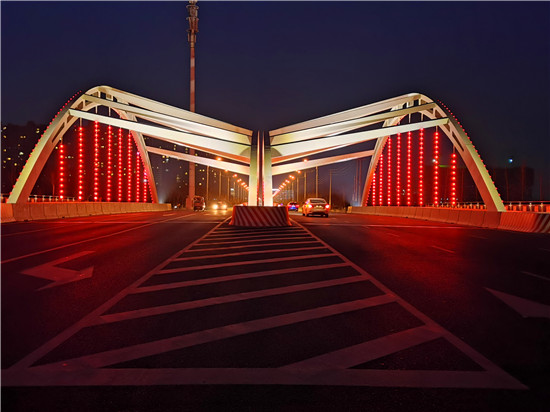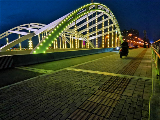 為提升周口形象,扮靚周口城,市委、市政府在改造水系的同時,新建、改造了河面上的橋梁,流沙河泰山路橋是新建橋,不僅滿足通行的需求,還具備景觀功能,亮起來的泰山路橋使城市也靚了起來。