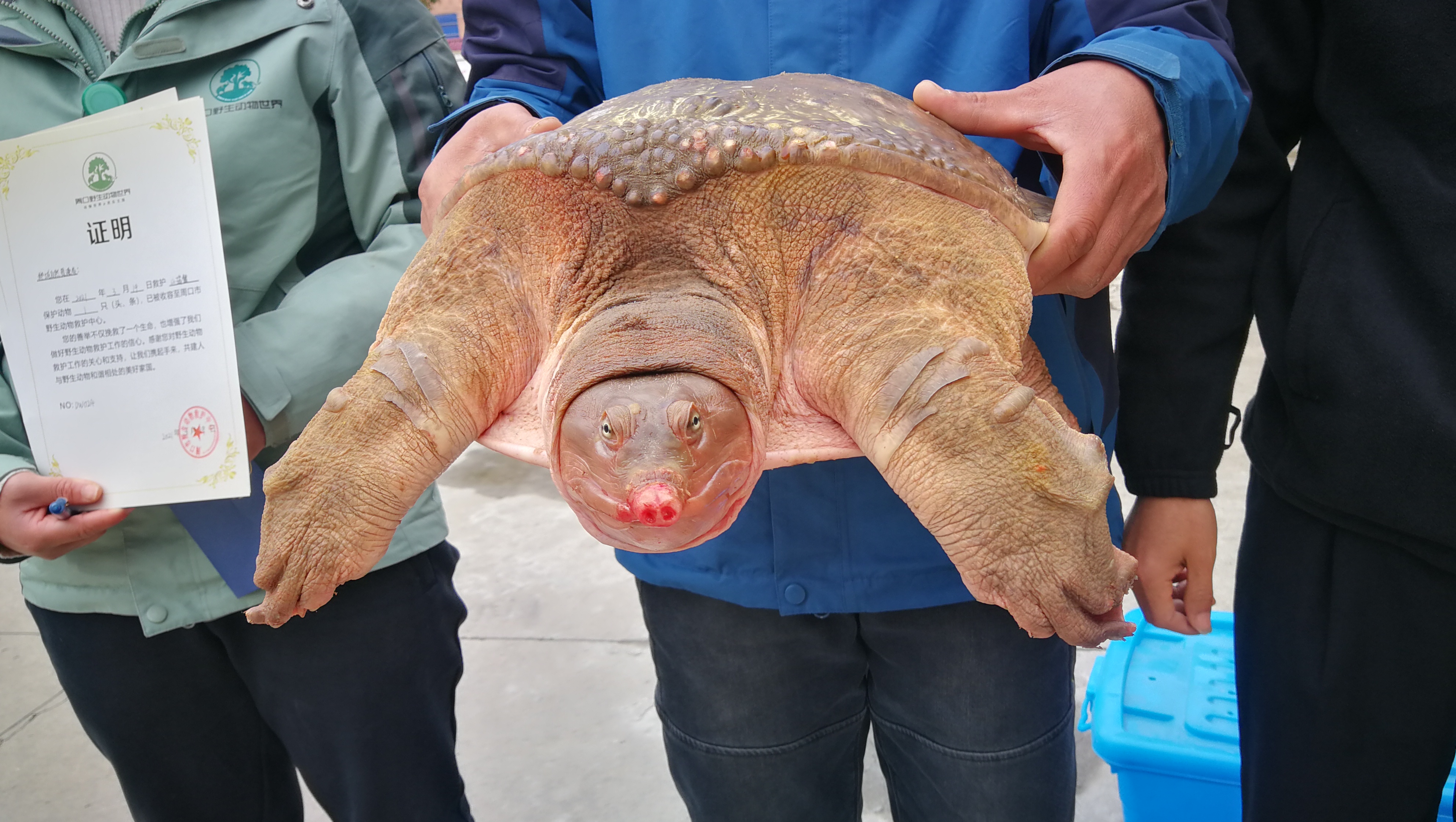 近日,鄲城縣自然資源局接到縣城市管理局公園管理辦公室工作人員救助電話,稱在人民公園岸邊又發(fā)現(xiàn)一只“大老鱉”。接到救助電話后,該局領(lǐng)導(dǎo)立即指派野生動植物保護(hù)和自然保護(hù)地管理股工作人員前往現(xiàn)場救助。經(jīng)過勘察,這只“大老鱉”與3月9日救助的那只山瑞鱉一樣,屬國家二級保護(hù)動物,長度達(dá)到70厘米,重量超過30斤,頭部和腳部受傷嚴(yán)重。經(jīng)過簡單消毒處理后,這只山瑞鱉被送往周口野生動物救助中心進(jìn)行進(jìn)一步的救治。