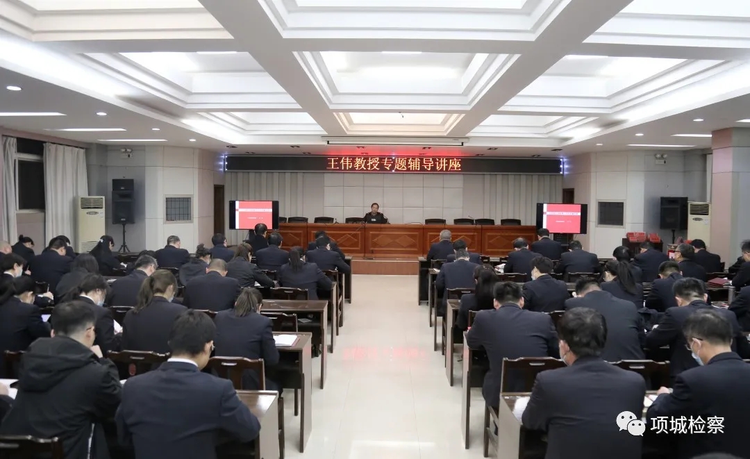 為推動(dòng)檢察隊(duì)伍教育整頓學(xué)習(xí)教育環(huán)節(jié)往深里走、往實(shí)里去,3月22日晚,項(xiàng)城市檢察院邀請(qǐng)周口市委黨校副教授王偉到“檢察夜?!睘楦删M(jìn)行黨建知識(shí)專題講座,夯實(shí)政治教育根基,提升干警思想政治素質(zhì)。王偉以《以黨建引領(lǐng)檢察工作高質(zhì)量發(fā)展》為題,從“背景闡釋:深刻認(rèn)識(shí)黨建時(shí)代內(nèi)涵”、“歷史演進(jìn):準(zhǔn)確把握基層組織作用”“路徑拓展:科學(xué)理解基層黨建手段”、“強(qiáng)發(fā)展、協(xié)調(diào)發(fā)展、高質(zhì)量發(fā)展。 王偉邊講解邊播放ppt課件。其報(bào)告主題鮮明、邏輯清晰,內(nèi)容豐富、語言生動(dòng),旁征博引、貫古通今,深入淺出、通俗易懂,讓干警美美享受一堂黨建教育“大餐”。