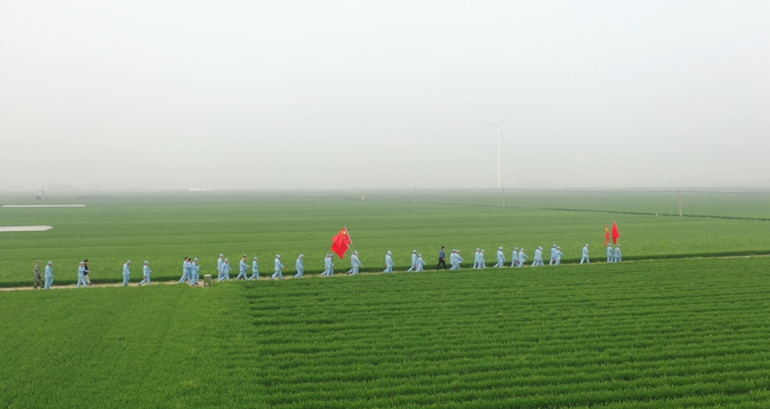 行軍途中,大家兩兩對(duì)齊,步伐堅(jiān)定一致,口號(hào)嘹亮,無(wú)不展示出奉母鎮(zhèn)新時(shí)代基層干部的精神面貌,引來(lái)過(guò)往群眾的圍觀和贊賞。