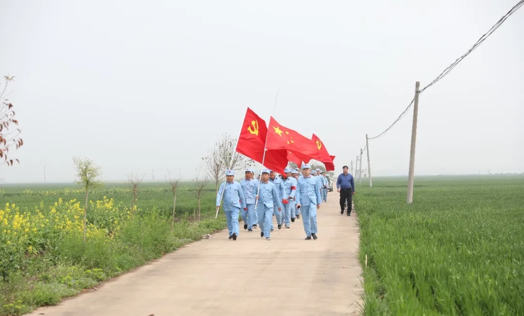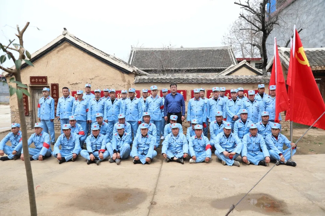 “我一定要跟著大部隊(duì)走,絕不掉隊(duì),不給紅軍前輩抹黑。”剛剛做完手術(shù)的七一村黨支部書(shū)記何治安斬釘截鐵地說(shuō)。在七二村,熱情好客的七里倉(cāng)群眾不僅給“大軍”送來(lái)了西紅柿、黃瓜、茶雞蛋、香蕉等補(bǔ)給品,還表演了“祖國(guó)你好”、“美麗生活”等扇子舞,再現(xiàn)了當(dāng)年紅軍到哪都受人民群眾擁戴的情景,同志們的疲憊一下子煙消霧散.....按照拓展行程安排,在盆李村的“周口市第一個(gè)農(nóng)村黨支部舊址”,同志們進(jìn)行了參觀瞻仰和重溫入黨誓詞等活動(dòng),回顧了歷史,緬懷了先烈,震撼了心靈,錘煉了黨性。