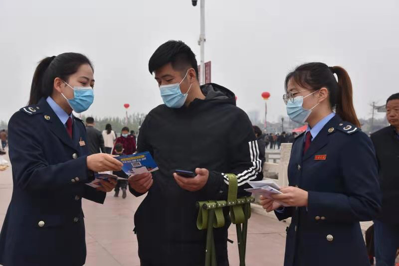 農(nóng)歷二月二至三月三,是淮陽太昊陵一年一度的大型傳統(tǒng)廟會,吸引全國各地的萬千游客前來尋根問祖。4月7日,淮陽區(qū)稅務(wù)局以“便民辦稅春風(fēng)行動”為契機,組織稅法宣傳志愿者深入太昊陵廣場,開展“送稅法進廟會”宣傳活動,向逛會游客、群眾和廟會攤主發(fā)放稅法宣傳資料。