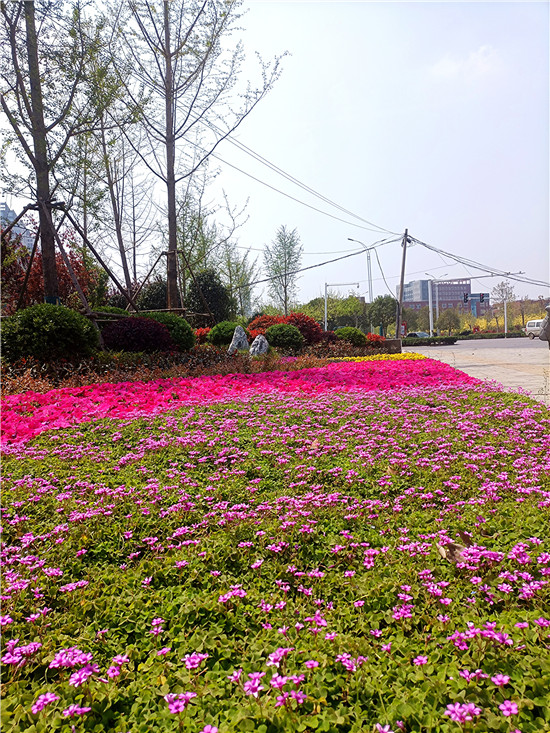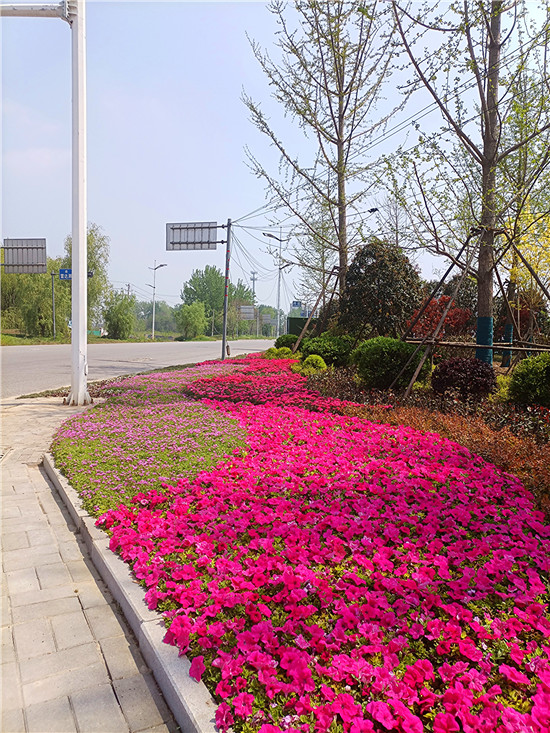 春時(shí)花事道不盡,千姿百態(tài)競嬌妍。近日,隨著天氣漸暖,我市各色花卉相繼綻放,在周口大道與建設(shè)大道交叉口一處綠化帶內(nèi),色彩繽紛的花卉編織成一條花的長廊,令人眼前一亮。