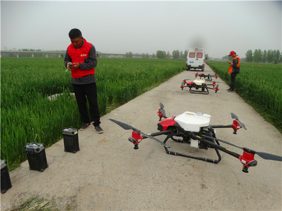 據(jù)了解,目前,該鎮(zhèn)日出動小麥無人機24架次,日防治面積2萬余畝,計劃4月19日,全鎮(zhèn)3.2萬畝麥田全部噴藥防控一遍。③5