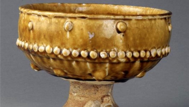 在河南省周口市博物館就陳列著一件保存完整,制作工藝精湛,造型精美的唐代壽州窯黃釉乳釘紋豆,它給人以美的享受,是同類器物中的精品,為國家一級珍貴文物。
