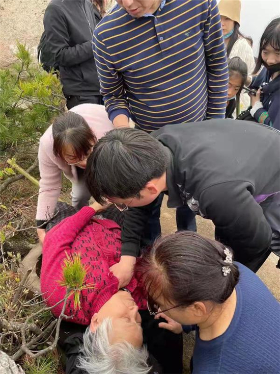 大河網(wǎng)訊 5月3日13點35分左右,周口市兒童醫(yī)院醫(yī)生趙一品在游覽洛陽白云山景區(qū)的途中,遇到一位突發(fā)疾病暈倒的老太太。聽到家屬呼救,趙一品迅速來到暈倒的老太太身邊,協(xié)助家屬清理了老太太口中的食物殘渣,讓病人平躺等待救援。