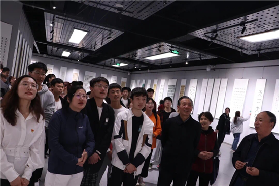 觀看過程中,離退休工作處理科支部四位老教師為同學們認真講解每幅書法作品的來源和深義,將美育與黨史學習教育充分結合,以書法為媒向在場學生展開愛國主義教育、理想信念教育和革命傳統(tǒng)教育。