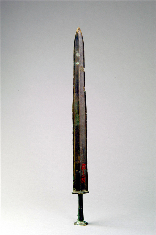 劍,古代冷兵器,屬于“短兵”,乃是兵中王者,被稱為“百兵之君”。開雙刃身直頭尖,橫豎可傷人,擊刺可透甲,兇險(xiǎn)異常,生而為殺。也用以佩帶,以顯示貴族的身份地位。青銅劍,一般是銅、錫合金冶煉鑄造而成的,商周時(shí)期開始出現(xiàn),春秋戰(zhàn)國時(shí)期達(dá)到頂峰,一直延續(xù)到秦漢,隨著鐵劍的出現(xiàn)才銷聲匿跡。越王劍,本是越王所鑄之劍,也可用于賞賜和饋贈(zèng)。