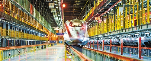 鄭州南動(dòng)車所對標(biāo)準(zhǔn)組動(dòng)車進(jìn)行檢修。近年來,高鐵新線的陸續(xù)開通,為鄭州逐步建設(shè)成國際性綜合交通樞紐提供了強(qiáng)勁動(dòng)力。 王 錚攝(中經(jīng)視覺)