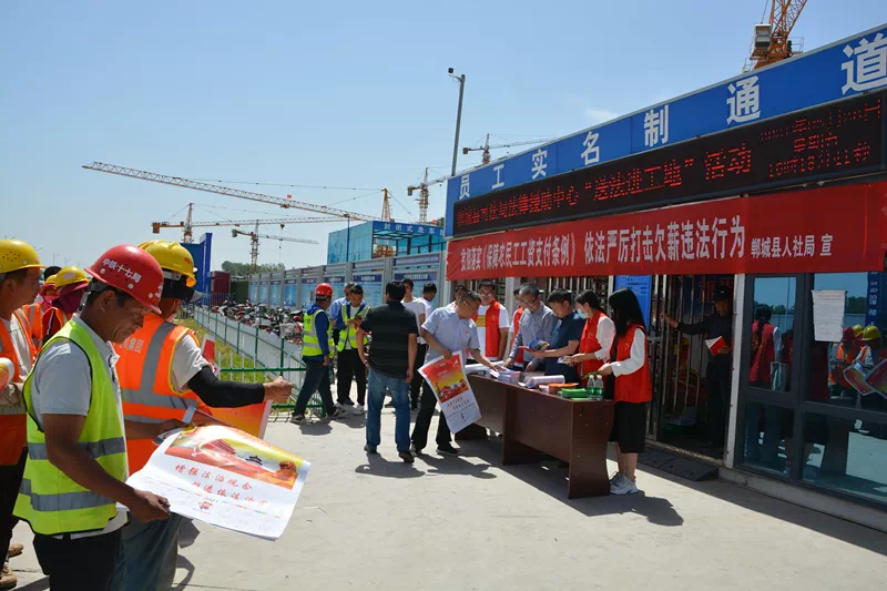 為切實(shí)提升政法隊(duì)伍教育整頓成效,扎實(shí)開展“我為群眾辦實(shí)事”實(shí)踐活動(dòng),進(jìn)一步增強(qiáng)農(nóng)民工的法律意識(shí),5月28日,鄲城司法局法律援助中心、鄲城縣人社局勞動(dòng)監(jiān)察大隊(duì)聯(lián)合組成志愿者服務(wù)隊(duì),來(lái)到“建業(yè)桂圓”“潤(rùn)城二號(hào)院”項(xiàng)目工地,開展“心系農(nóng)民工,送法進(jìn)工地”宣傳活動(dòng)。