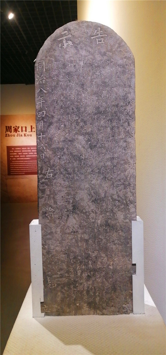 這通《嚴(yán)禁溜夫訛索客船事告示碑》作為當(dāng)時(shí)周口水運(yùn)秩序管理中的官方意志,為研究清代晚期周口漕運(yùn)文化提供了真實(shí)寶貴的歷史資料。在周口市博物館,它卓然獨(dú)立于一隅,默默地講述著那段水路風(fēng)云。③6